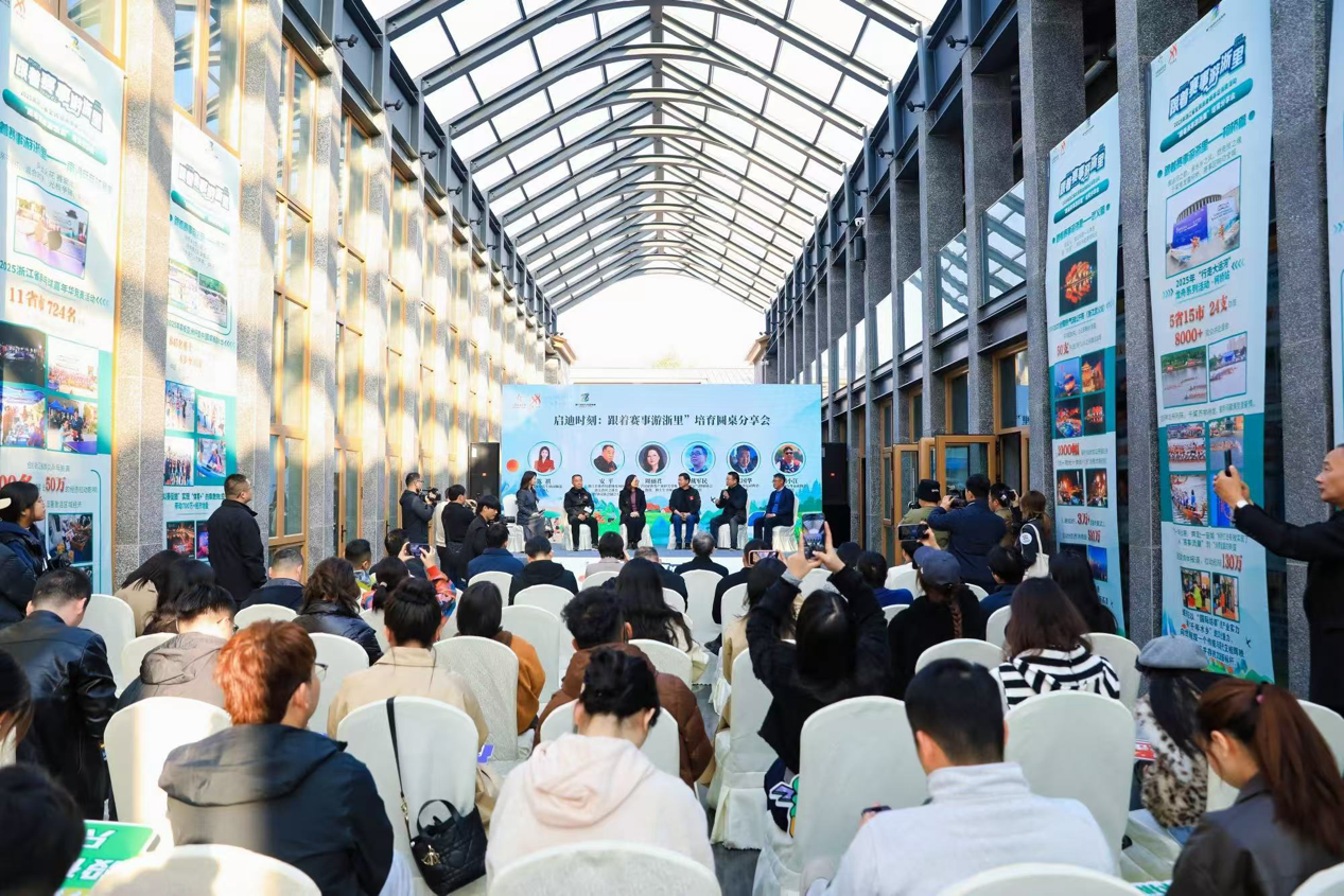 11月22日,2025年浙江省全民健身赛事促消费活动暨“跟着赛事游浙里”培育分享会在杭州凤凰里文创园启幕。为助力展会圆满举办、推动学生综合素质发展,91吃瓜 提前启动志愿者招募与专项培训,组建200余人志愿者团队,全程参与赛会服务,以青春力量为文旅盛会保驾护航,点亮杭城银杏之秋。