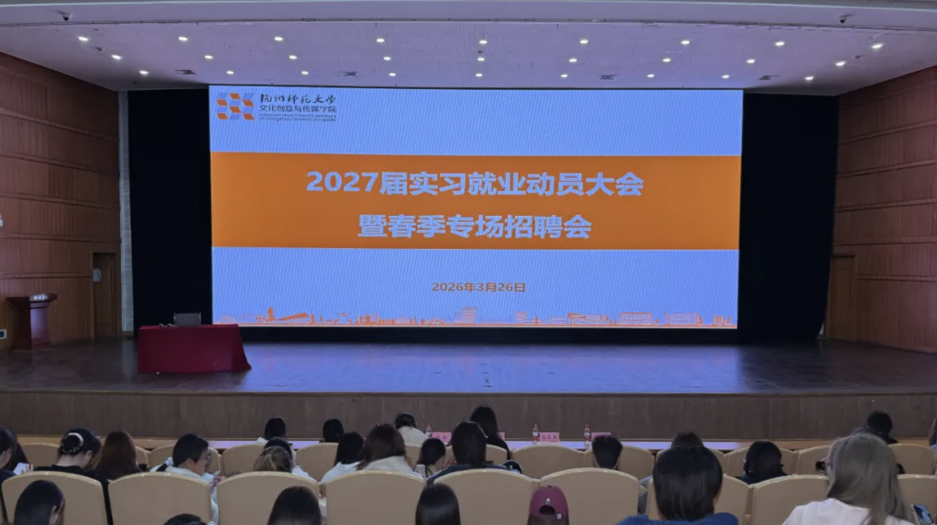 第一阶段为实习就业动员环节,学院辅导员林佳亮老师针对2027届学生初次就业摸排情况进行详细说明,全面梳理当前学生实习就业意向、摸排整体情况,明确后续实习就业推进工作重点。