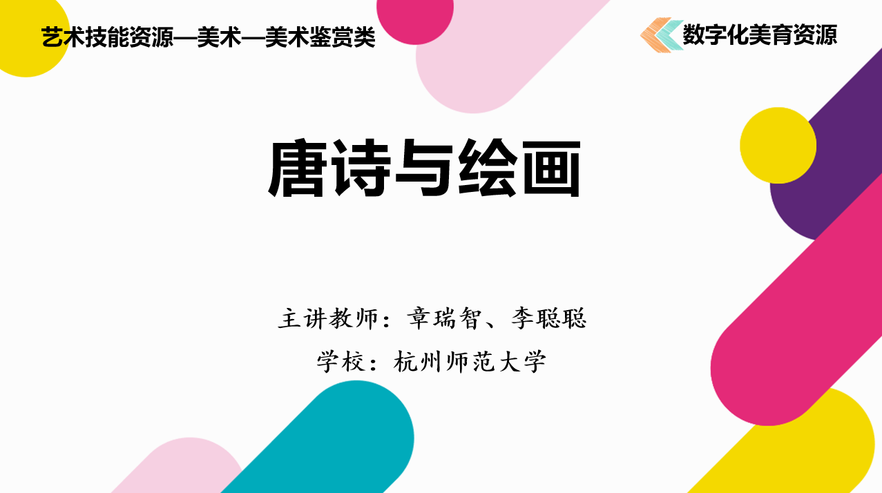 近日,教育部2025年度数字化美育资源和智能化美育应用案例征集遴选结果正式公布,91吃瓜 章瑞智、李聪聪老师团队申报的美育课程资源《唐诗与绘画》成功入选,获评国家数字化美育资源。